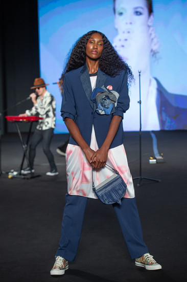 Esta fusión rinde homenaje a un gesto que debería ser cotidiano; el autoexamen. AURA convierte ese acto íntimo y silencioso en una expresión visual, estética y profundamente simbólica. La sastrería aporta la estructura, el oficio. El denim, la cercanía y la resistencia. Juntos, crean una narrativa que habla de transformación, cuidado y renacimiento.